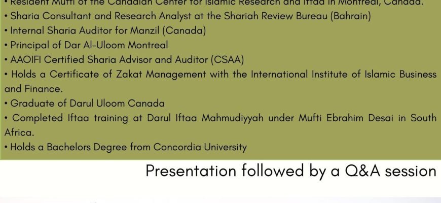 • Resident Mufti of the Canadian Center for Islamic Research and Iftaa in Montreal, Canada.
